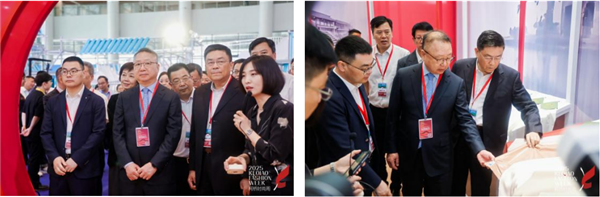 中国纺织工业联合会会长孙瑞哲,副会长阎岩,绍兴市柯桥区委书记袁建,区委副书记、区长景尧等领导莅临展区