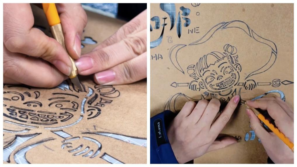 蓝印花布规划,“有图必有意,有意必吉利”。曩昔,蓝印花布图样多选用盘长纹、蝙蝠纹、万字纹、花鸟图样等涵义吉利的传统纹样,这次用蓝印花布印染技艺刻画“哪吒”这一全新形象,也是一次不小的应战。
