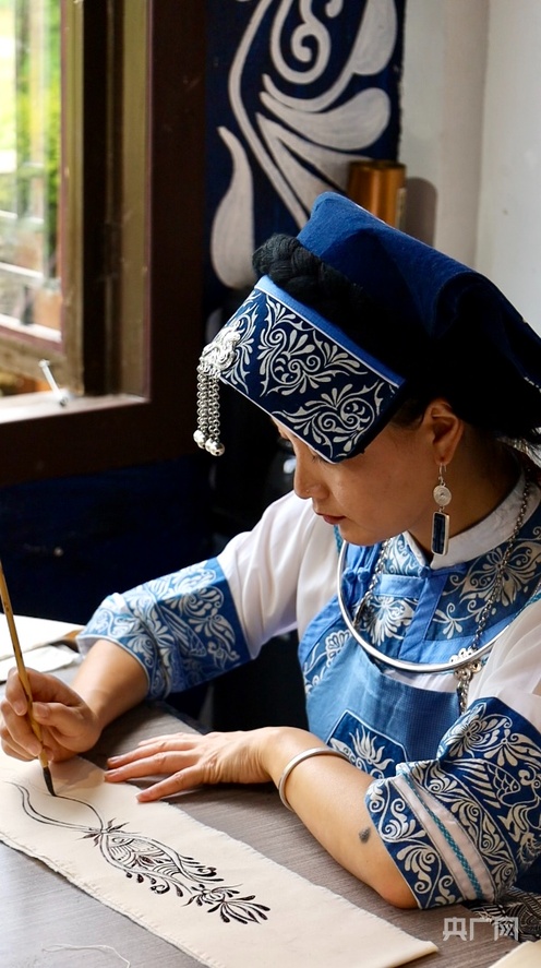 “现在,咱们的非遗走出了大山,这项陈旧的技艺正在被渐渐的变多的人知晓。”在贵阳市花溪区青岩镇龙井村百越布依工作室,36岁的国家级非遗布依族服饰市级代表性传承人罗世林坐在窗边,用毛笔蘸取枫香油细细描画,屋里木质香气潇洒充满,交游顾客川流不息。